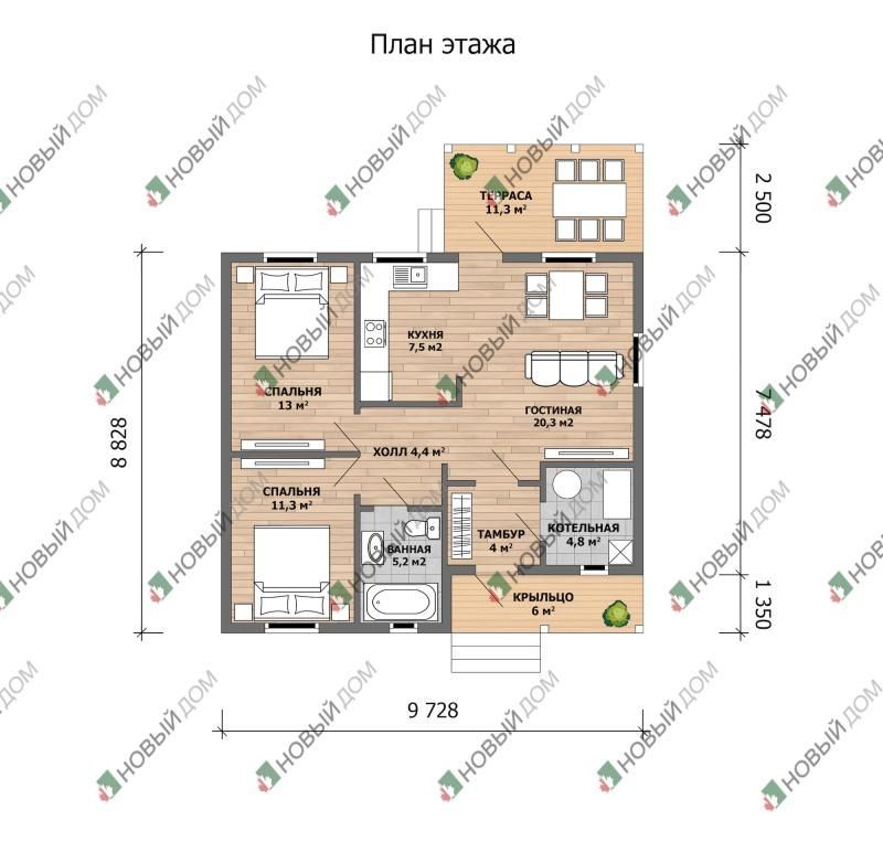 - Габариты (без террасы) - 8.8х9.7 м